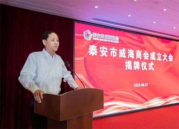 8月27日,泰安市威海商會成立大會暨揭牌儀式在麗景美侖酒店舉行,泰安市工商聯(lián)黨組成員、副主席周曉,威海市工商聯(lián)黨組成員、三級調研員、市總商會黨委書記夏忠平出席會議并講話,泰安各異地商會代表到會祝賀