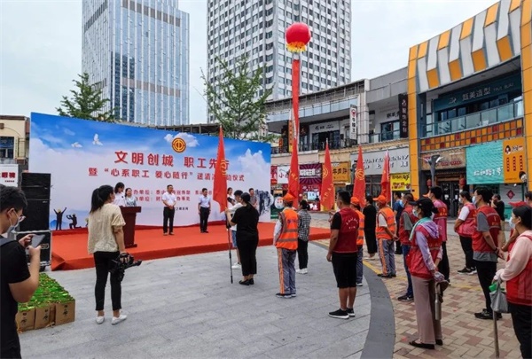 儀式上,財(cái)源街道黨工委書(shū)記李進(jìn)致辭,區(qū)委常委、宣傳部長(zhǎng)秦曉做動(dòng)員講話,動(dòng)員廣大職工要深刻認(rèn)識(shí)文明城市創(chuàng)建的重大意義,切實(shí)把思想和行動(dòng)統(tǒng)一到市委、區(qū)委的決策部署上來(lái),充分發(fā)揮好工人階級(jí)主力軍作用,弘揚(yáng)勞模精神和工匠精神,積極主動(dòng)投身到創(chuàng)建一線,全力以赴完成迎審任務(wù)。職工代表劉笑蕾宣讀倡議書(shū),由市總工會(huì)黨組成員、副主席陳長(zhǎng)舉宣布活動(dòng)正式啟動(dòng)?,F(xiàn)場(chǎng)向各街道鎮(zhèn)“文明創(chuàng)城職工先鋒隊(duì)”授旗、并向創(chuàng)城一線職工代表發(fā)放慰問(wèn)品。
