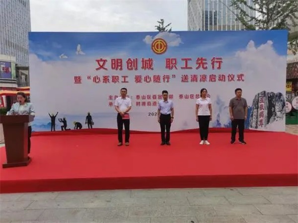 為全面深化我區(qū)全國(guó)文明城市創(chuàng)建工作,進(jìn)一步提升全區(qū)整體文明程度,提高創(chuàng)建水平,鞏固創(chuàng)建成果,8月7日,泰山區(qū)“文明創(chuàng)城職工先行”主題活動(dòng)暨“心系職工 愛(ài)心隨行”送清涼啟動(dòng)儀式在泰安萬(wàn)達(dá)廣場(chǎng)舉行。