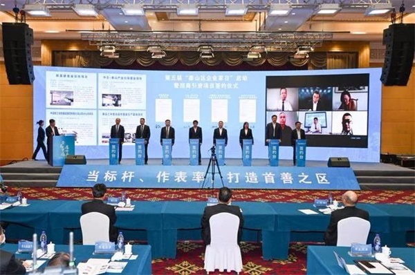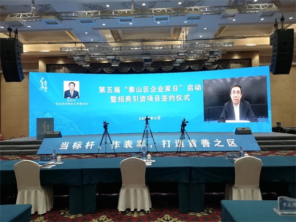 5月17日下午,泰安市泰山區(qū)舉行“泰山區(qū)企業(yè)家日”啟動(dòng)暨招商引資項(xiàng)目簽約儀式?;顒?dòng)中,泰山區(qū)副區(qū)長張明強(qiáng)介紹了全區(qū)有關(guān)工作情況,山東岱銀紡織服裝集團(tuán)董事長、泰山區(qū)企業(yè)家協(xié)會(huì)會(huì)長趙煥臣、東華軟件股份公司董事長、北京泰安企業(yè)商會(huì)會(huì)長薛向東等3位企業(yè)家分別致辭。在隨后的項(xiàng)目簽約環(huán)節(jié)中,共有22個(gè)項(xiàng)目線上線下集中簽約,總投資額達(dá)107.1 億元。