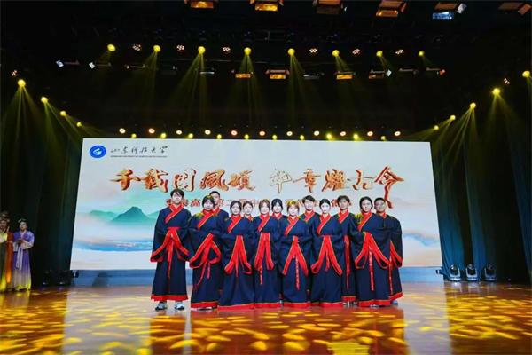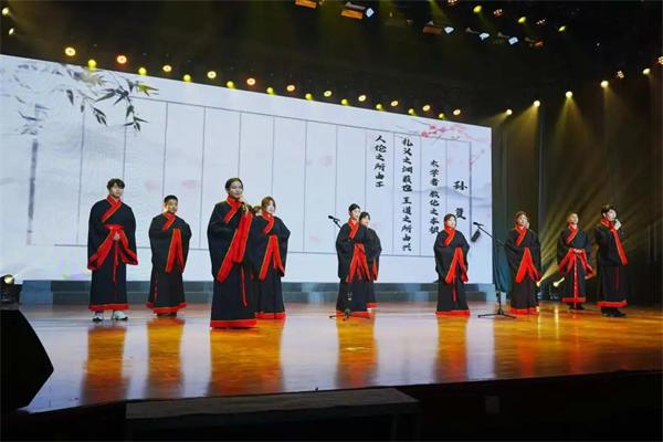 開幕式在山東科技大學(xué)西校園禮堂隆重舉行,精彩的節(jié)目展演將現(xiàn)場氣氛推向高潮。泰山雅樂團深情演繹朗誦《宋初三先生寄語》,表演者們慷慨激昂,展現(xiàn)出了宋初文人的壯志豪情,讓大家沉浸在古詩文朗誦中,領(lǐng)略傳統(tǒng)文化的獨特韻味。