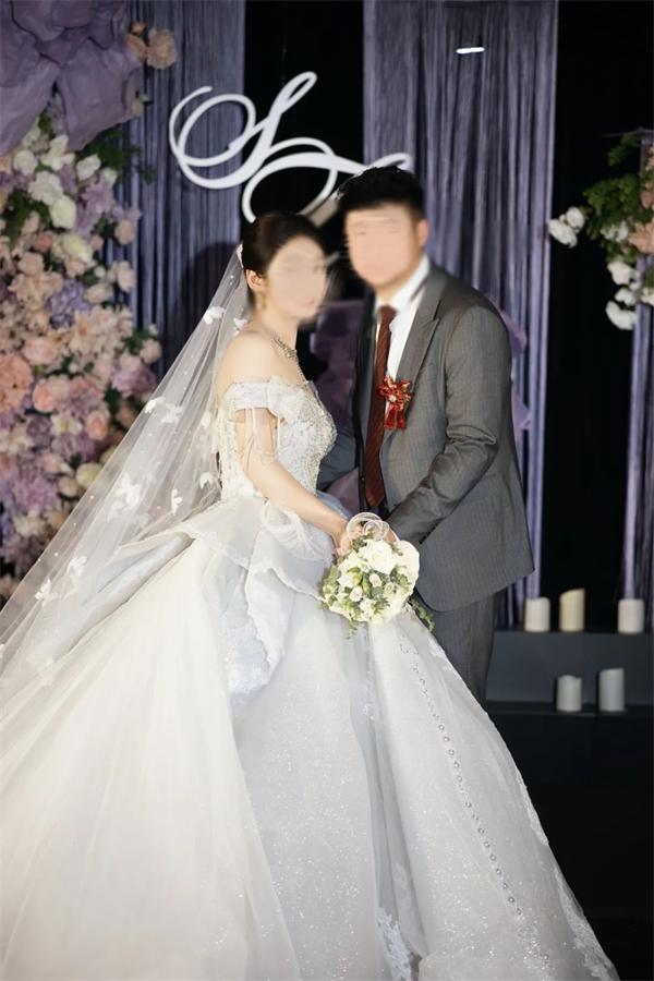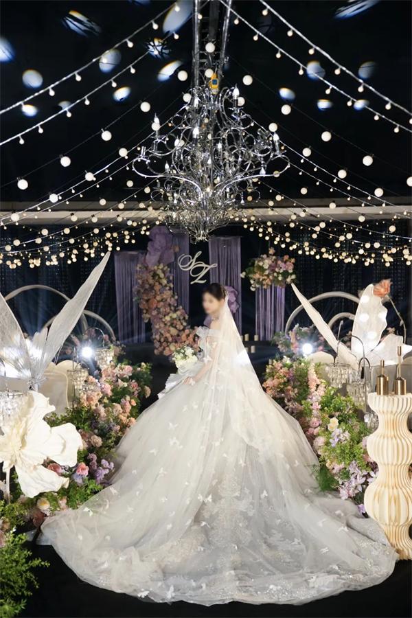 當(dāng)交換戒指的瞬間,頭頂?shù)幕ㄋ囇b置落下細碎的紫色花瓣雨,像一場溫柔的祝福。原來最好的儀式,就是讓愛被自然見證,讓每一縷花香都記得:今天,有兩個人,在紫色的花海里,把余生寫成了共同的落款。